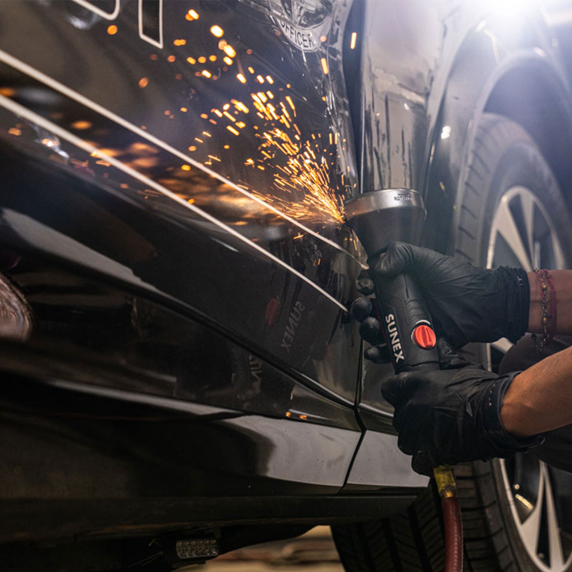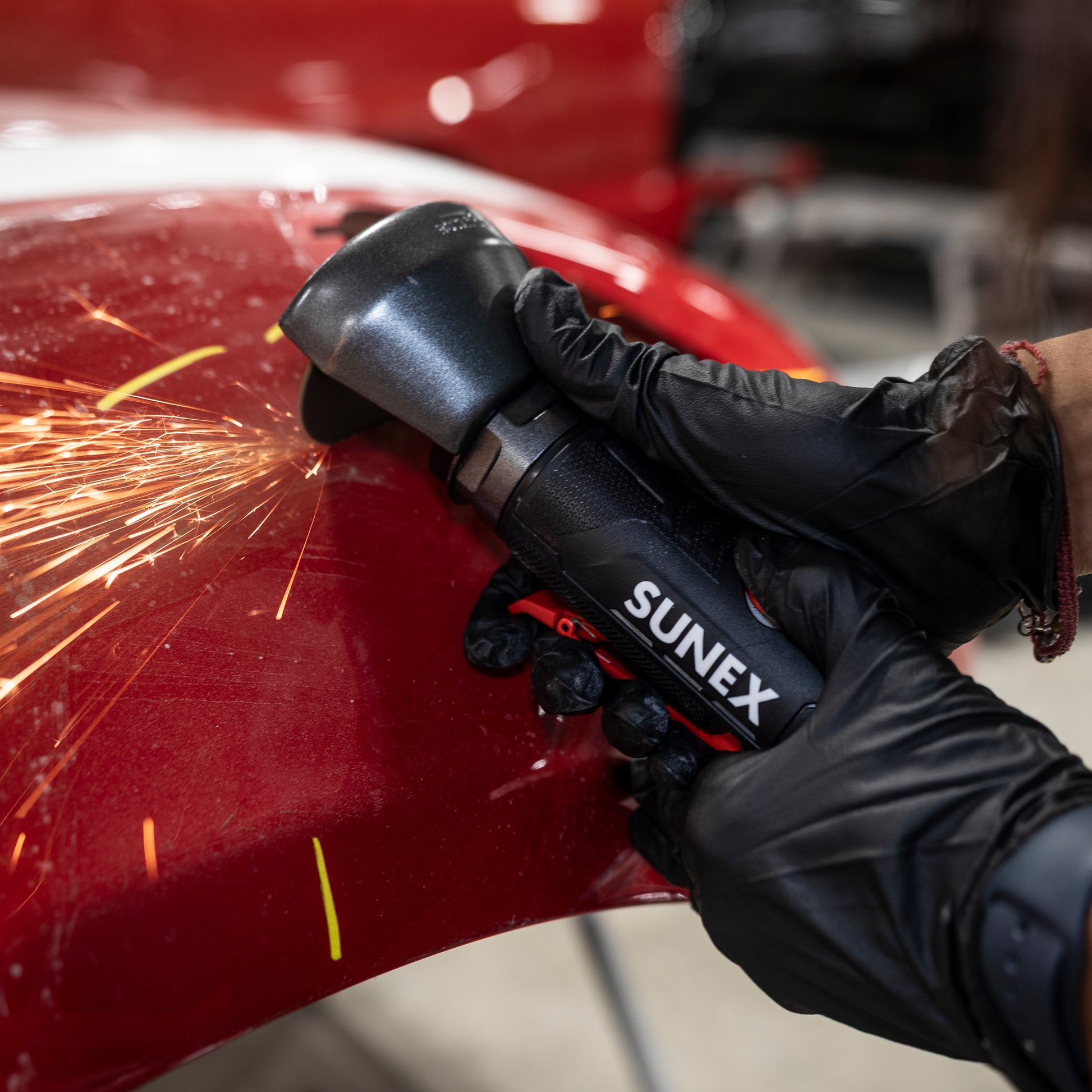 - The SUNEX Tools SX6213 0.5HP 3”Cut-Off Tool is built for precision, power, and safety in demanding automotive and fabrication environments. Its strong 0.5HP motor delivers fast, clean cuts through mufflers, tailpipes, bolts, and sheet metal with ease. The oversized cutting guard gives you full control over spark flow, improving safety in tight spaces. An adjustable power regulator provides accurate speed control, helping reduce material damage and improving cut quality. Weighing just 1.8 lbs, the lightweight composite body is designed to minimize operator fatigue without compromising durability. The ergonomic overmold grip offers a secure, comfortable hold while dampening vibration for better handling. The safety lock-off trigger prevents accidental engagement, while the rear exhaust system keeps debris away from both the user and the work surface. With a free speed of 22,000 RPM, this tool offers exceptional cutting efficiency, and its 3.5 CFM air consumption at 90 PSI ensures compatibility with standard air systems. A 3” Cut-Off Disc Wheel is included with the SX6213 0.5HP 3” Cut-Off Tool. Whether you're tackling custom exhaust jobs or cutting through tough materials, the SX6213 delivers reliable performance with safety, speed, and control.