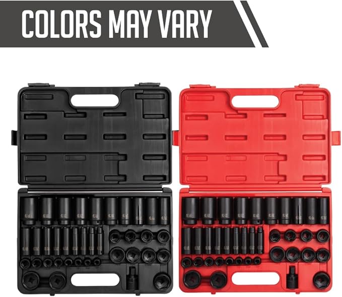 - 1/2" drive 3/8" impact socket, 1/2" drive 3/8" deep impact socket, 1/2" drive 7/16" impact socket, 1/2" drive 7/16" deep impact socket, 1/2" drive 1/2" impact socket, 1/2" drive 1/2" deep impact socket, 1/2" drive 9/16" impact socket, 1/2" drive 9/16" deep impact socket, 1/2" drive 5/8" impact socket, 1/2" drive 5/8" deep impact socket, 1/2" drive 11/16" impact socket, 1/2" drive 11/16" deep impact socket, 1/2" drive 3/4" impact socket, 1/2" drive 3/4" deep impact socket, 1/2" drive 13/16" impact socket, 1/2" drive 13/16" deep impact socket, 1/2" drive 7/8" impact socket, 1/2" drive 7/8" deep impact socket, 1/2" drive 15/16" impact socket, 1/2" drive 15/16" deep impact socket, 1/2" drive 1" impact socket, 1/2" drive 1" deep impact socket, 1/2" drive 1-1/16" impact socket, 1/2" drive 1-1/16" deep impact socket, 1/2" drive 1-1/8" impact socket, 1/2" drive 1-1/8" deep impact socket, 1/2" drive 1-3/16" impact socket, 1/2" drive 1-3/16" deep impact socket, 1/2" drive 1-1/4" impact socket, 1/2" drive 1-1/4" deep impact socket, 1/2" drive 1-5/16" impact socket, 1/2" drive 1-5/16" deep impact socket, 1/2" drive 1-3/8" impact socket, 1/2" drive 1-3/8" deep impact socket, 1/2" drive 1-7/16" impact socket, 1/2" drive impact universal joint, 1/2" drive 1-7/16" deep impact socket, 1/2" drive 1-1/2" impact socket, 1/2" drive 1-1/2" deep impact socket