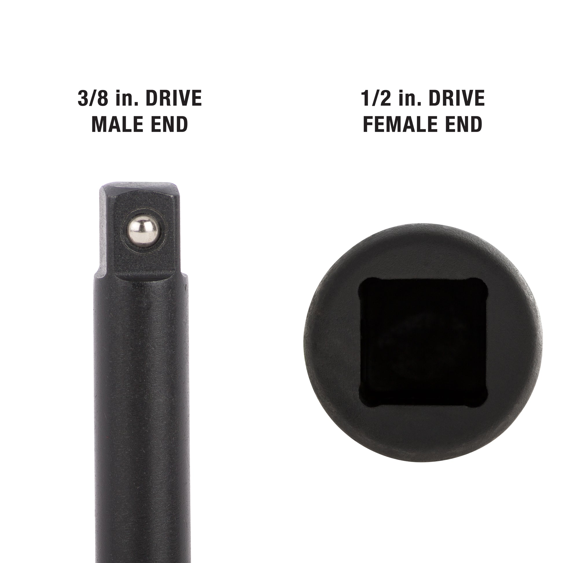- Dual-Drive Design – Features a 1/2" female drive for impact wrenches or ratchets and a 3/8" male drive for sockets and universal sockets, maximizing tool compatibility.