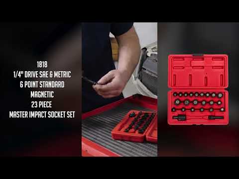- 1/4" drive impact universal joint, 1/4" drive 2" extension, 1/4" drive 5.5mm magnetic impact socket, 1/4" drive 5mm magnetic impact socket, 1/4" drive 3/16" magnetic impact socket, 1/4" drive 6mm magnetic impact socket, 1/4" drive 7/32" magnetic impact socket, 1/4" drive 7mm magnetic impact socket, 1/4" drive 1/4" magnetic impact socket, 1/4" drive 8mm magnetic impact socket, 1/4" drive 9/32" magnetic impact socket, 1/4" drive 9mm magnetic impact socket, 1/4" drive 5/16" magnetic impact socket, 1/4" drive 10mm magnetic impact socket, 1/4" drive 11/32" magnetic impact socket, 1/4" drive 11mm magnetic impact socket, 1/4" drive 3/8" magnetic impact socket, 1/4" drive 12mm magnetic impact socket, 1/4" drive 13mm magnetic impact socket, 1/4" drive 7/16" magnetic impact socket, 1/4" drive 14mm magnetic impact socket, 1/4" drive 15mm magnetic impact socket, 1/4" drive 1/2" magnetic impact socket