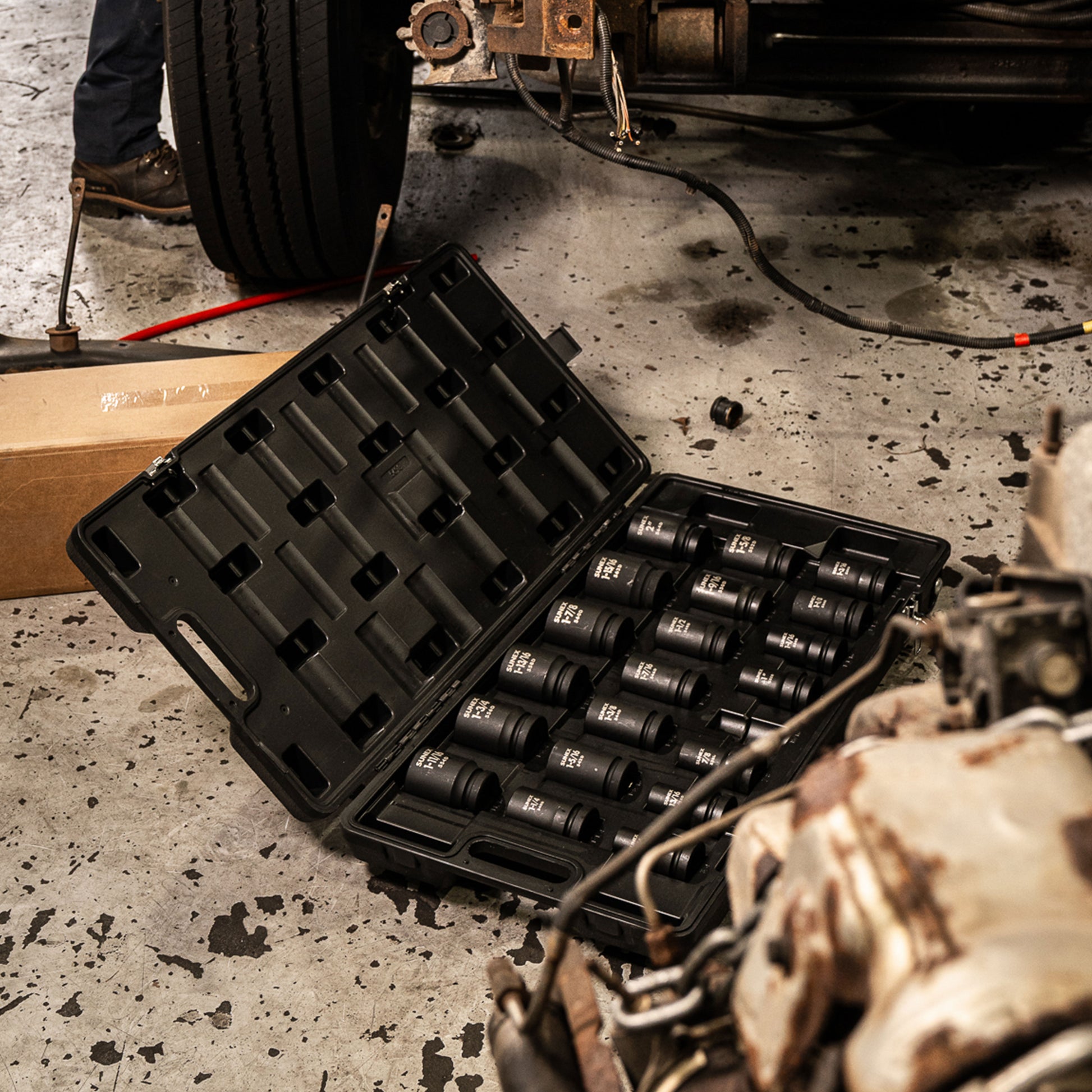 - Included Sockets: 1" Drive Deep Impact Sockets: 3/4", 13/16", 7/8", 15/16", 1", 1-1/8", 1-3/16", 1-1/4", 1-5/16", 1-3/8", 1-1/2", 1-9/16", 1-5/8", 1-11/16", 1-3/4", 1-13/16", 1-7/8", 1-15/16", 2"