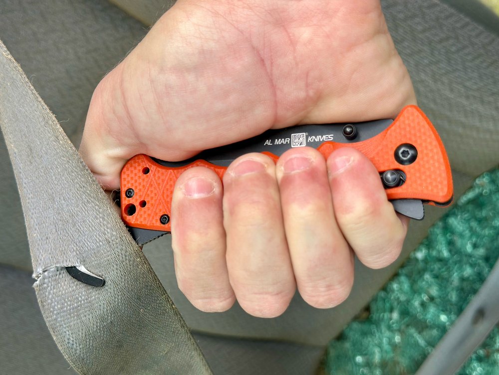 - Carbide glass breaker – Quickly shatter vehicle windows for fast extractions.