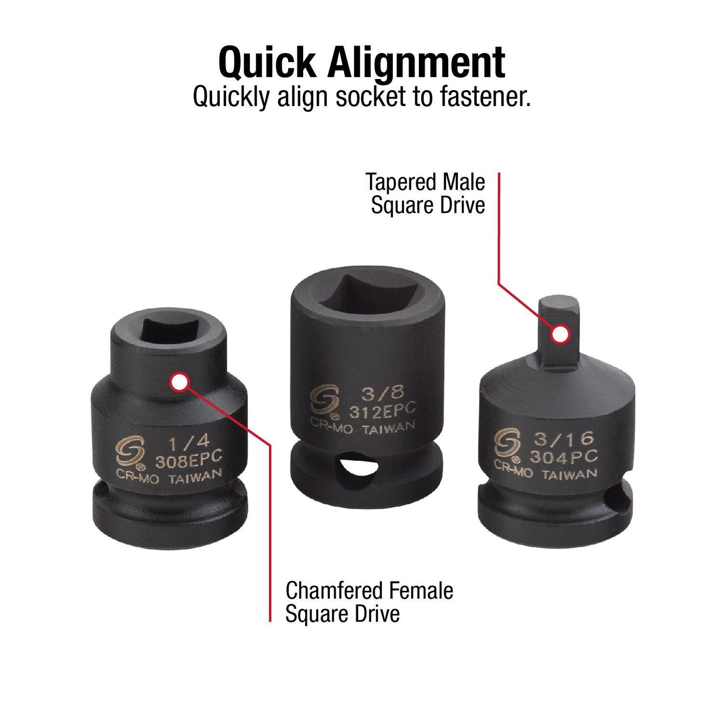 - Quick Alignment : Tapered male and chamfered female square drive ends for quick positioning