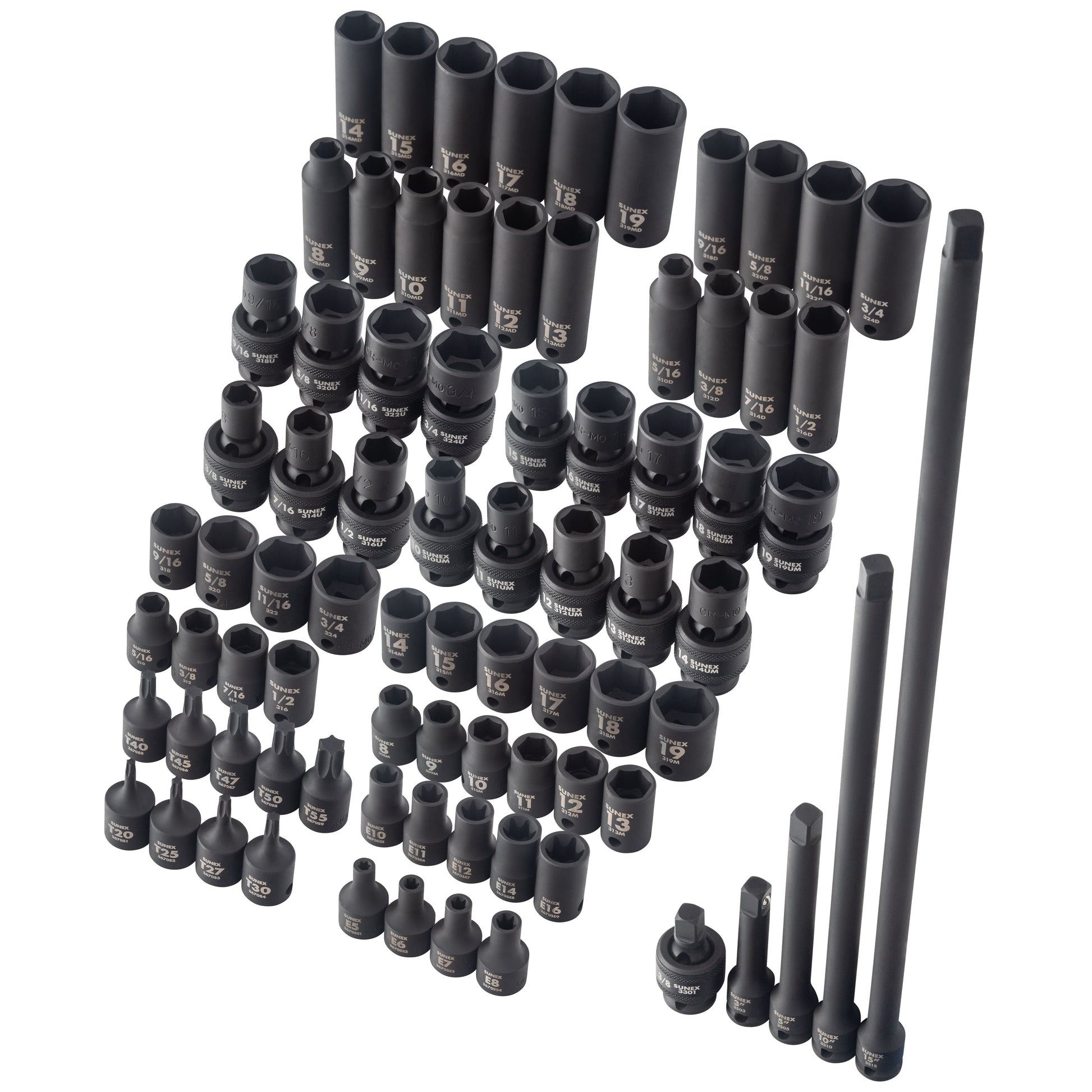 - Complete coverage: Eighty-piece master impact socket set in SAE and metric sizes with no skipped sizes for broad automotive and industrial use