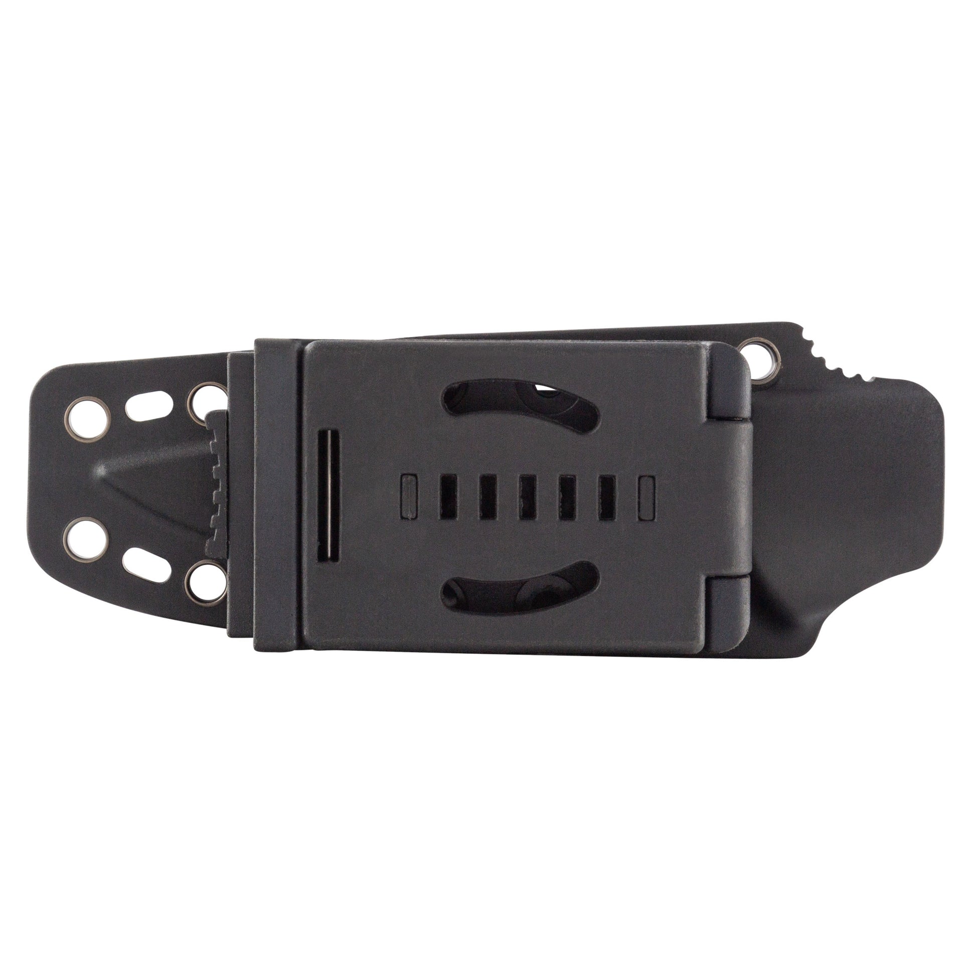 - Click in sheath with integrated carbide sharpener