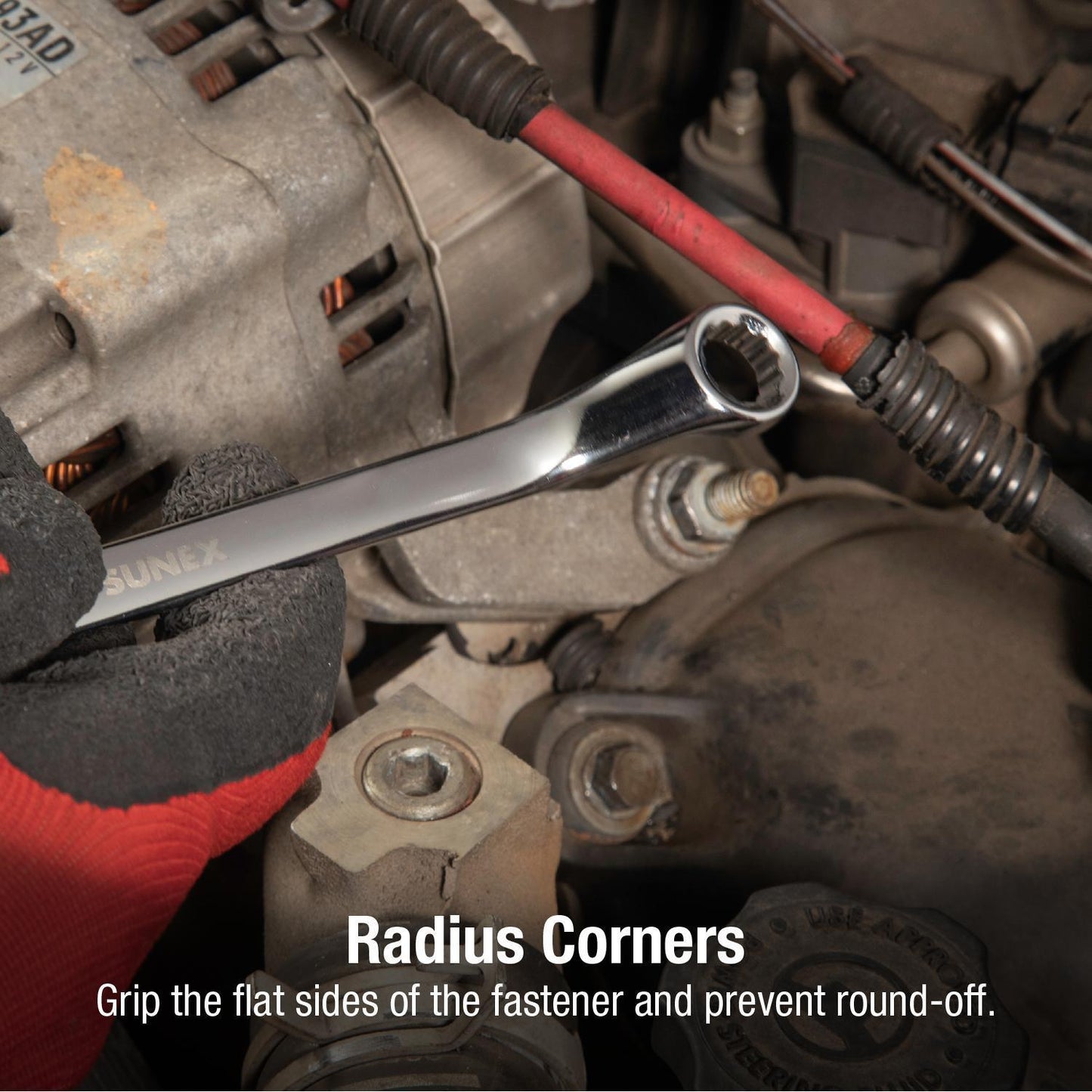 - RADIUS CORNERS : Grip the flat sides of the fastener head instead of the corner to prevent round-off.
