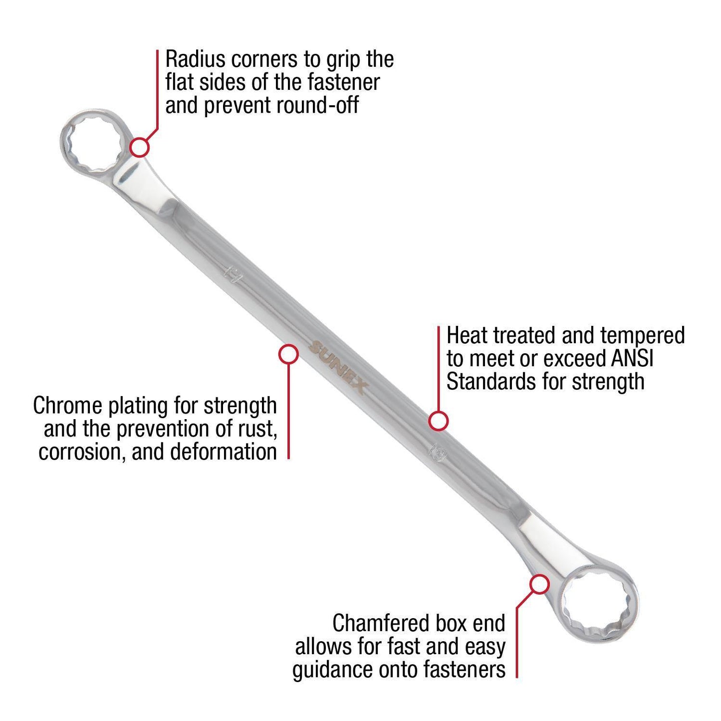 - CHAMFERED BOX END : Allows for fast and easy guidance onto fasteners.