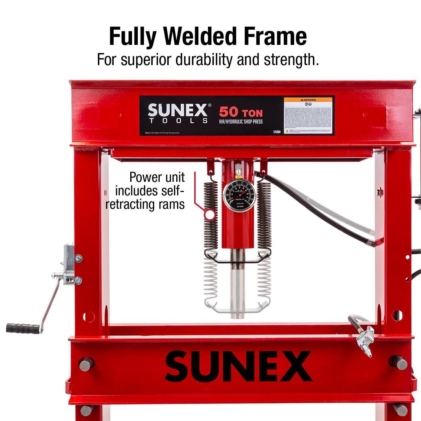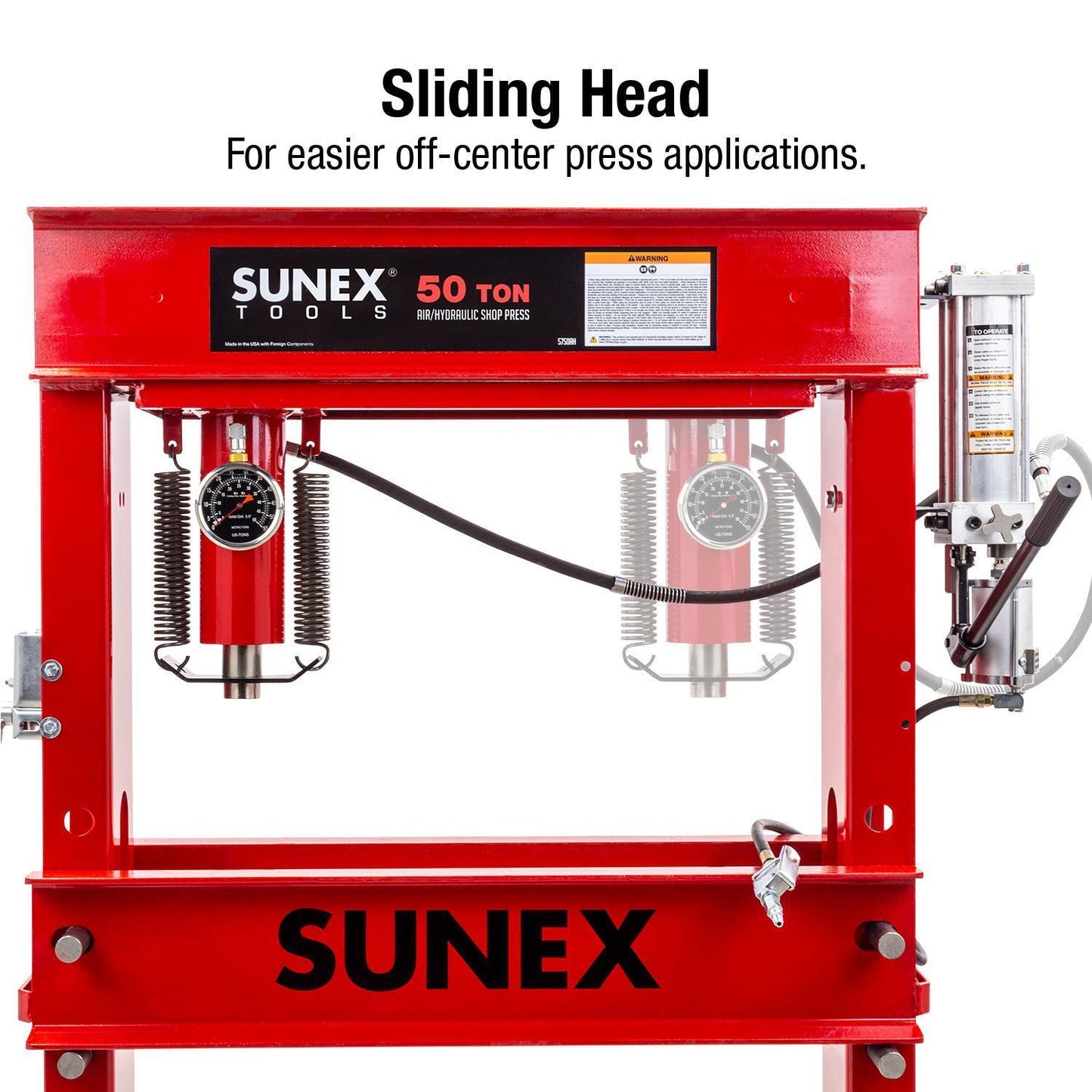 - For nearly five decades, SUNEX® Tools has been designing and manufacturing shop presses and accessories for automotive, heavy-duty truck, and industrial shops. Since 1977, professionals nationwide look to SUNEX® Tools for top-performing heavy-duty shop presses. Our presses are available in capacities ranging from 12 tons to 100 tons, and we offer manual and air/hydraulic power options. With all-welded steel construction and heavy-duty rams, SUNEX® shop presses are ready to meet your toughest workplace demands.