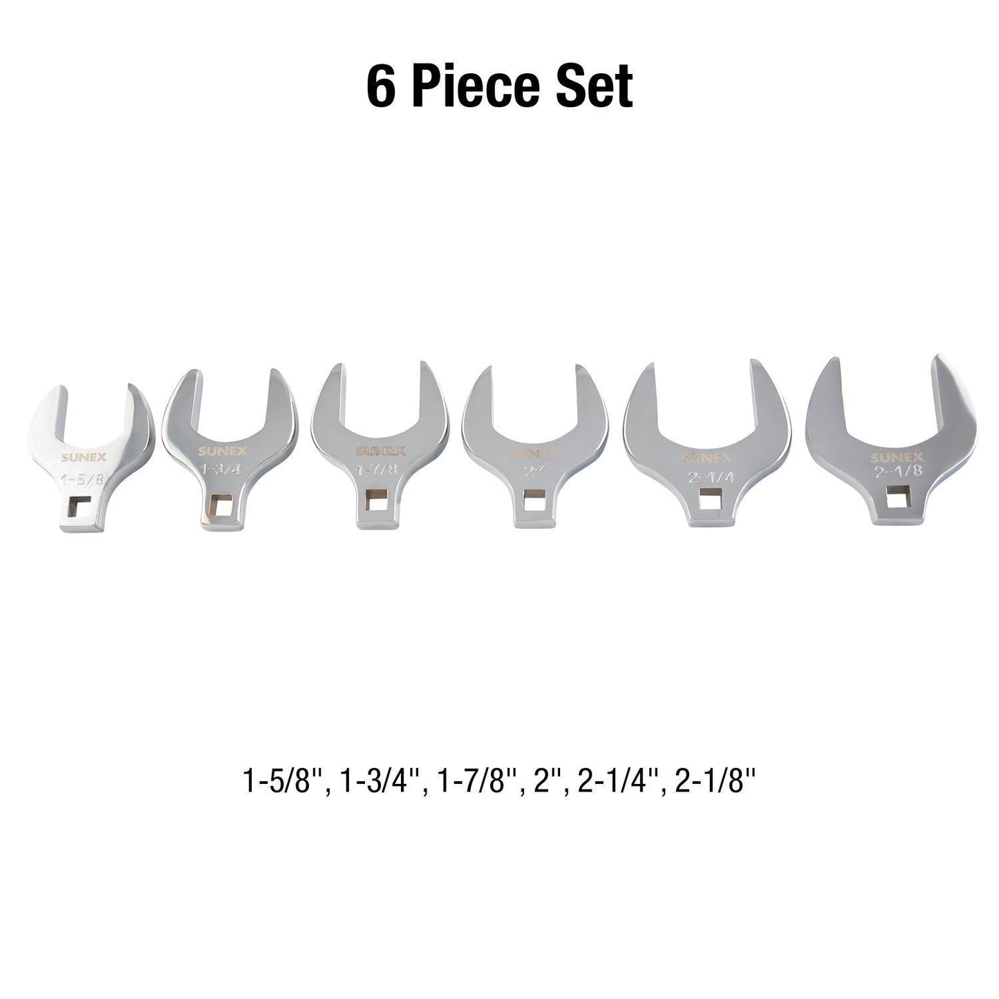 - 1/2" drive 1-5/8" jumbo crowfoot wrench, 1/2" drive 1-3/4" jumbo crowfoot wrench, 1/2" drive 1-7/8" jumbo crowfoot wrench, 1/2" drive 2" jumbo crowfoot wrench, 1/2" drive 2-1/8" jumbo crowfoot wrench, 1/2" drive 2-1/4" jumbo crowfoot wrench