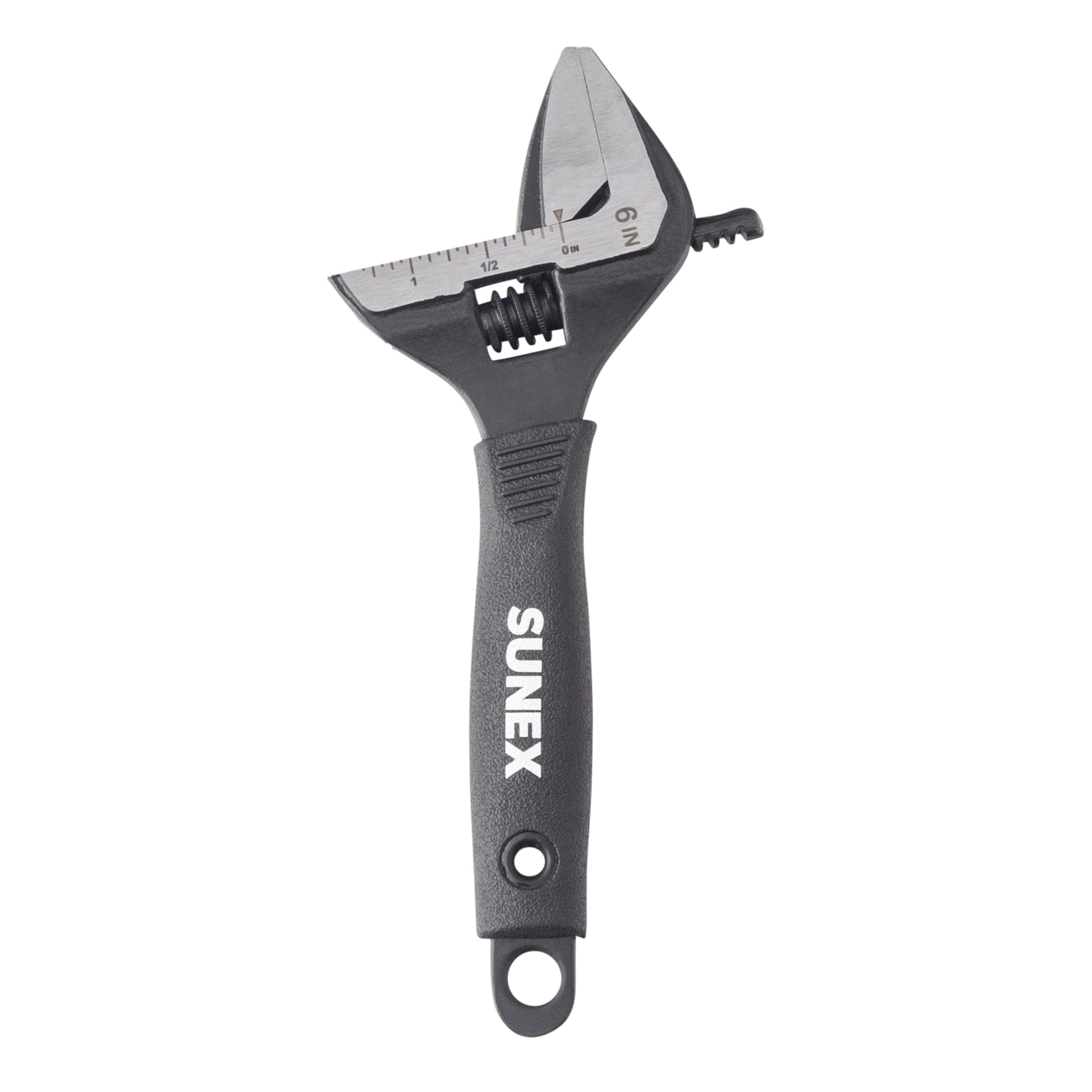 - For added convenience, the integrated hang hole makes pegboard or tool rack storage simple and efficient. Whether you’re a mechanic, plumber, or DIY enthusiast, the SUNEX Tools 9611 Wide Jaw Adjustable Wrench is a must-have addition to your toolbox, combining strength, precision, and versatility in one compact 6" design.