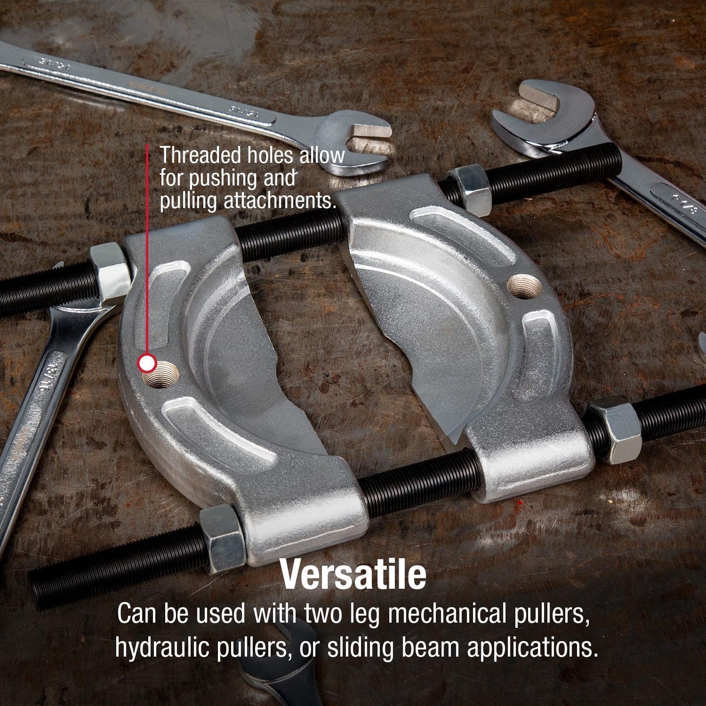 - VERSATILE : Can be used in conjuction with two leg mechanical pullers, hydaulic pullers or sliding beam applications while the threaded holes allow for pushing and pulling attachments.