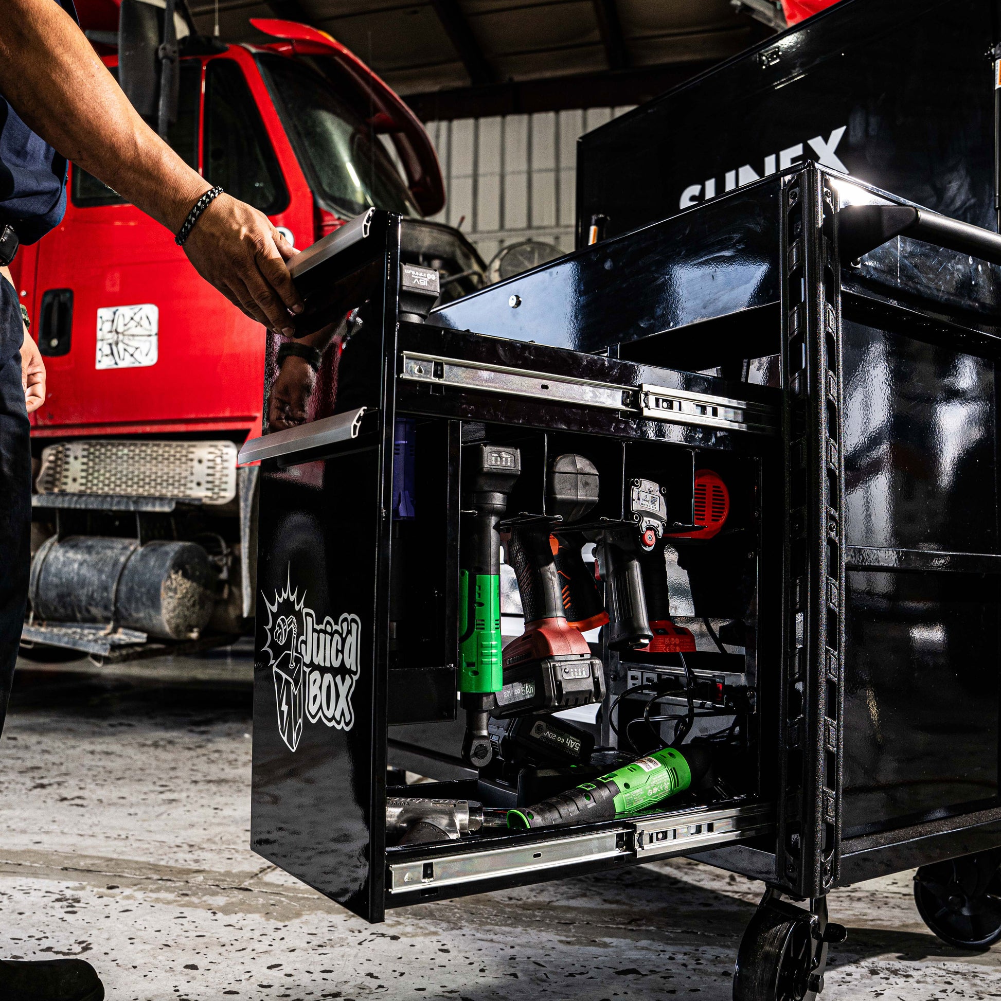 • Whether in a busy auto shop, workshop, or garage, the Juic’d BOX delivers unmatched functionality, durability, and mobility—all fully assembled and ready to roll.