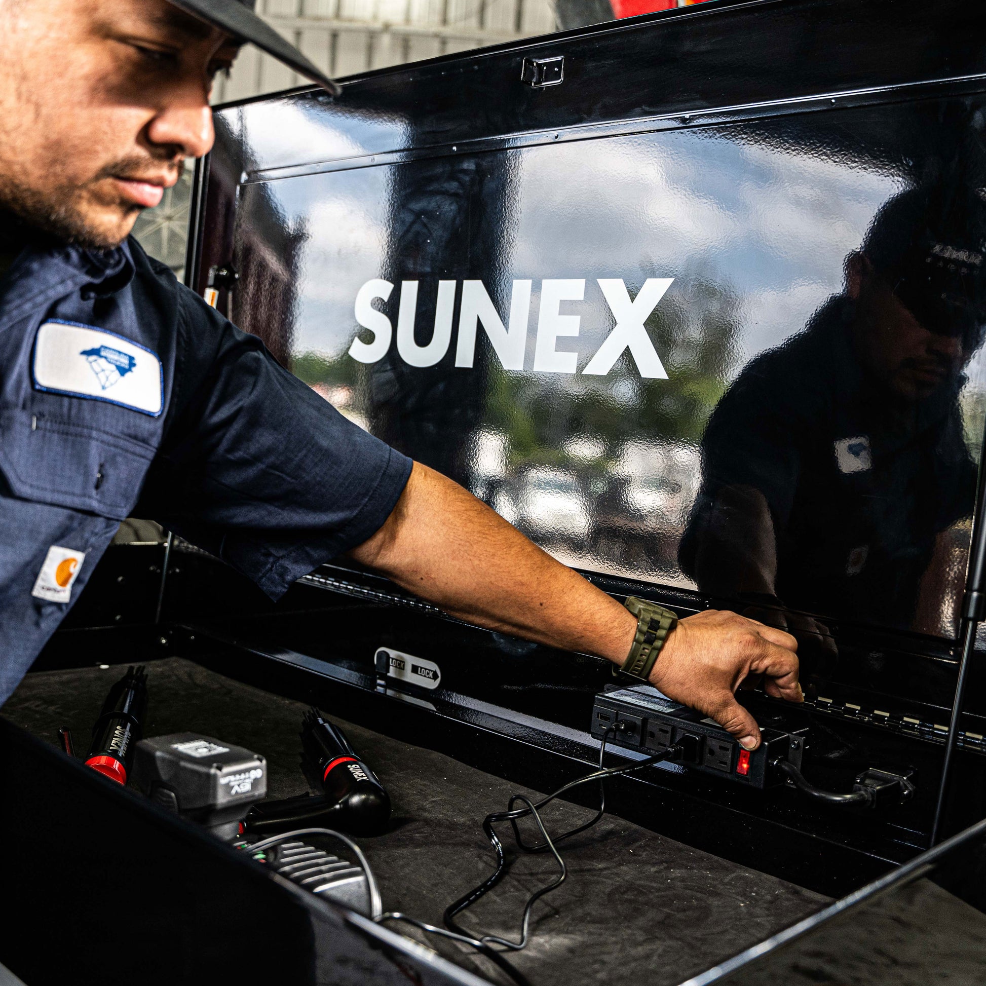 • SUNEX Tools Juic’d BOX 50” 7 Drawer Powered Cart – 8065PCBK is the ultimate storage and charging solution for professionals. Engineered for peak performance and convenience, this powered tool cart features dual integrated power strips with (6) 110V, (4) USB-A, and (4) USB-C outlets—charging up to 14 devices simultaneously, from cordless power tools to mobile devices. The innovative modular power drawer stores over 20 tools and offers exclusive dual-side access, plus dedicated long-reach ratchet storage—keeping your gear organized, accessible, and always “Juic’d.”
